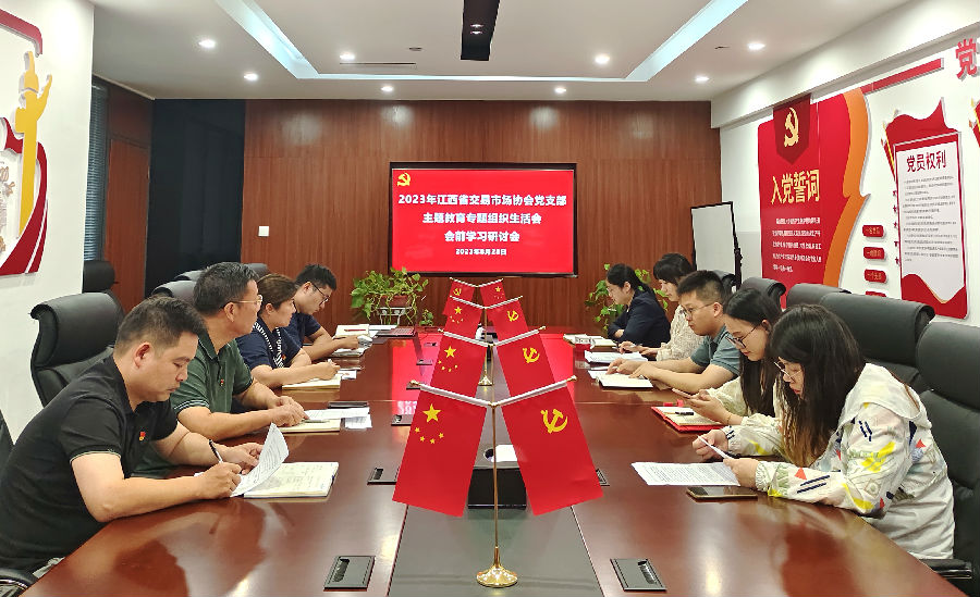 8月28日,江西省交易市場(chǎng)協(xié)會(huì)黨支部開展2023年主題教育專題組織生活會(huì)會(huì)前學(xué)習(xí)研討主題黨日活動(dòng)。協(xié)會(huì)執(zhí)行會(huì)長(zhǎng)、省聯(lián)交運(yùn)公司總經(jīng)理劉祖國(guó)主持會(huì)議并講話,支部全體黨員(含預(yù)備黨員)、發(fā)展對(duì)象、入黨積極分子一同參會(huì)。