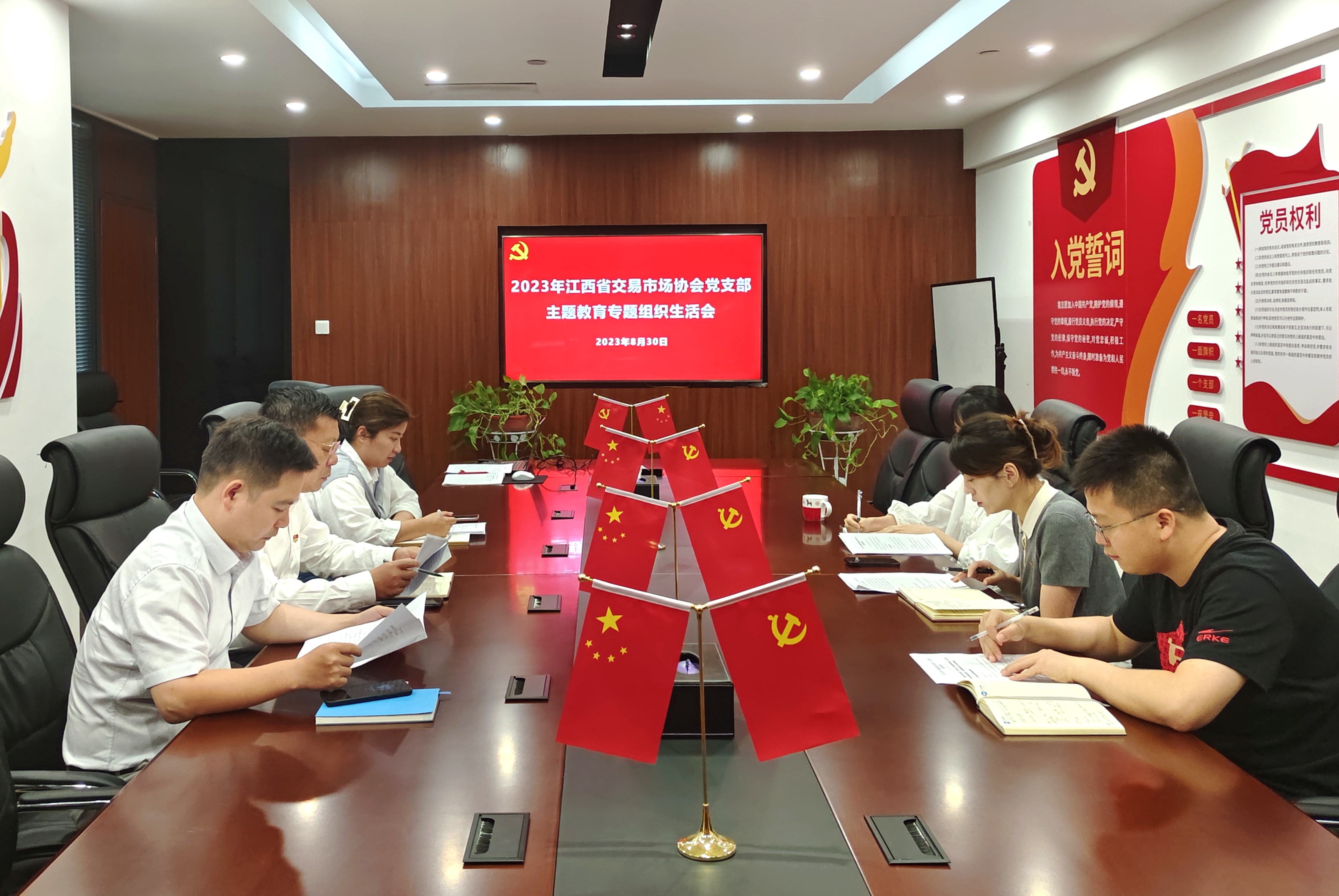 8月30日,江西省交易市場(chǎng)協(xié)會(huì)黨支部組織召開學(xué)習(xí)貫徹習(xí)近平新時(shí)代中國(guó)特色社會(huì)主義思想主題教育專題組織生活會(huì)。會(huì)議由支部書記黃莉主持,協(xié)會(huì)執(zhí)行會(huì)長(zhǎng)、省聯(lián)交運(yùn)公司董事、總經(jīng)理劉祖國(guó)以普通黨員身份參加會(huì)議,支部全體黨員參加會(huì)議。