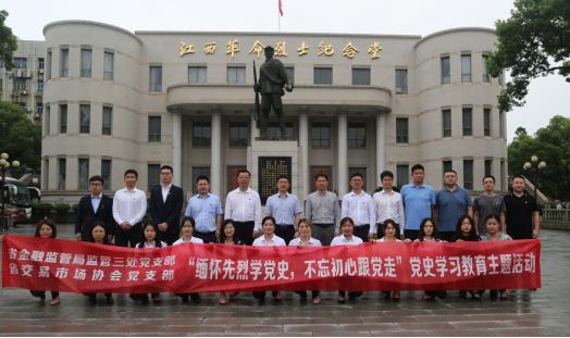 5月12日,省金融監(jiān)管局監(jiān)管三處黨支部與省交易市場協(xié)會黨支部赴革命烈士紀(jì)念堂聯(lián)合開展“緬懷先烈學(xué)黨史,不忘初心跟黨走”黨史學(xué)習(xí)教育主題黨日活動,省金融監(jiān)管局黨組成員、副局長徐鶴飛、省金融監(jiān)管局監(jiān)管三處黨支部、省交易市場協(xié)會黨支部、江西省聯(lián)交運(yùn)登記結(jié)算中心全體黨員及部分干部職工參加活動。