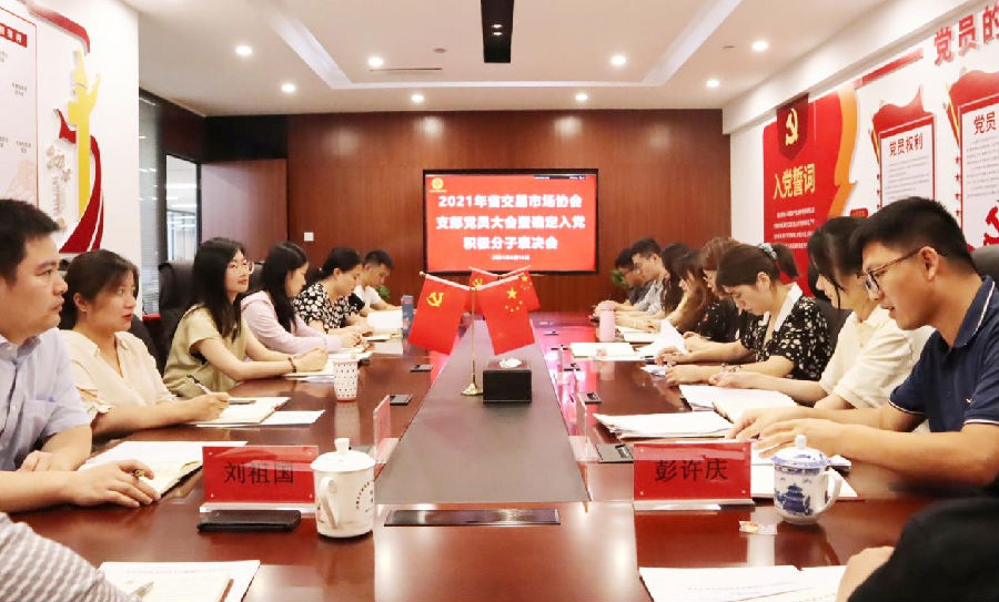 2021年2月25日下午,江西省交易市場協(xié)會召開支部黨員大會暨黨史學(xué)習(xí)主題黨日活動。會議由省交易市場協(xié)會黨支部書記李漢武同志主持,公司總經(jīng)理、省交易市場協(xié)會執(zhí)行會長劉祖國同志,省金融監(jiān)管局監(jiān)管一處黨建指導(dǎo)員參會,公司全體職工代表列席會議。