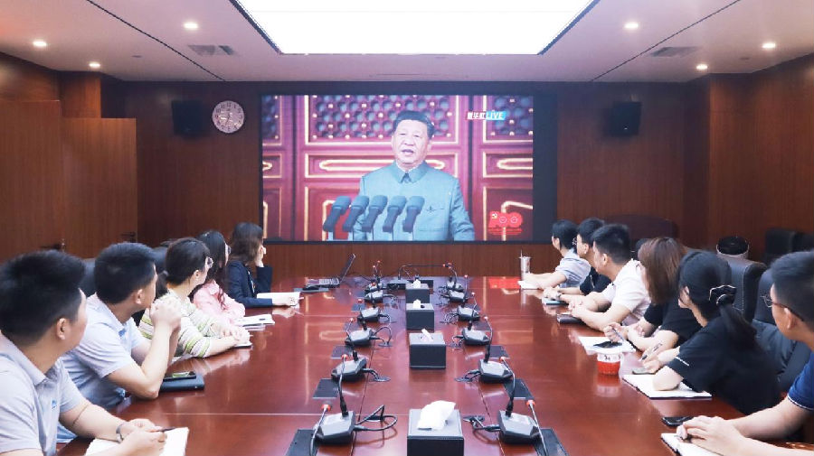 7月1日上午8時(shí),慶祝中國共產(chǎn)黨成立100周年大會在北京天安門廣場隆重舉行,中共中央總書記、國家主席、中央軍委主席習(xí)近平出席大會并發(fā)表重要講話。江西省聯(lián)交運(yùn)登記結(jié)算中心及江西省交易市場協(xié)會全體黨員干部員工集中觀看了大會盛況直播,感悟百年黨史,聆聽書記教誨,奮進(jìn)新的征程。