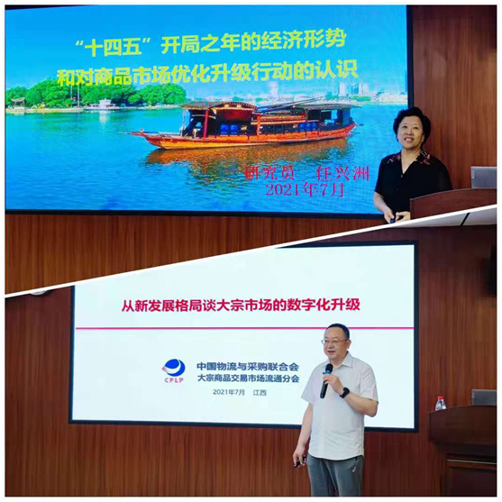 在演講交流環(huán)節(jié),任興洲以“‘十四五’開局之年的經(jīng)濟(jì)形勢和對商品市場優(yōu)化升級行動的認(rèn)識”為主旨進(jìn)行了演講。她在演講中對“十四五”開局之年的國際國內(nèi)經(jīng)濟(jì)發(fā)展情況進(jìn)行了深入分析并分享了自己對經(jīng)濟(jì)形勢發(fā)展的預(yù)測和判斷,她認(rèn)為在此新形勢下商品市場優(yōu)化升級勢在必行,現(xiàn)代商品市場及流通體系建設(shè)作為構(gòu)建“以國內(nèi)大循環(huán)為主體、國內(nèi)國際雙循環(huán)相互促進(jìn)”的新發(fā)展格局的重要組成部分和內(nèi)容之一,正處于最好的發(fā)展時(shí)期,中國商場市場發(fā)展未來可期!周旭以“從新發(fā)展格局談大宗市場的數(shù)字化升級”為主旨進(jìn)行了演講,重點(diǎn)就如何加快構(gòu)建大宗市場新發(fā)展格局、緊抓大宗市場優(yōu)化升級著力點(diǎn)、聚力再譜大宗市場發(fā)展新輝煌進(jìn)行了全面深入的分析和介紹。他認(rèn)為,隨著《商品市場優(yōu)化升級專項(xiàng)行動計(jì)劃(2021-2025)》發(fā)布和實(shí)施推進(jìn),目前商品市場也迎來了高質(zhì)量發(fā)展的機(jī)遇期和關(guān)鍵期,針對部分市場和企業(yè)在數(shù)字化、產(chǎn)業(yè)化轉(zhuǎn)型中“不會轉(zhuǎn)、不能轉(zhuǎn)、不敢轉(zhuǎn)”問題,他通過對當(dāng)前市場相關(guān)成功經(jīng)驗(yàn)、案例和成熟做法的詳細(xì)講解和介紹,強(qiáng)調(diào)商品市場和企業(yè)要樹立起數(shù)字經(jīng)濟(jì)發(fā)展理念、掌握平臺經(jīng)濟(jì)創(chuàng)新方法、共同推進(jìn)和完善現(xiàn)代供應(yīng)鏈模式創(chuàng)新發(fā)展。