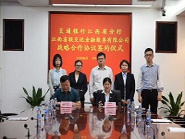 2017年8月25日上午,江西銀行股份有限公司(以下簡稱“江西銀行”)與江西省聯(lián)交運(yùn)金融服務(wù)有限公司(以下簡稱“江西聯(lián)交運(yùn)”)簽署戰(zhàn)略合作協(xié)議,江西銀行行長吳洪濤、副行長程宗禮、網(wǎng)絡(luò)金融部總經(jīng)理周再華、南昌洪城支行行長曾堅(jiān)輝,江西聯(lián)交運(yùn)總經(jīng)理劉祖國、業(yè)務(wù)發(fā)展部經(jīng)理徐文龍、財(cái)務(wù)清算部經(jīng)理徐志堅(jiān)等出席了簽約儀式。