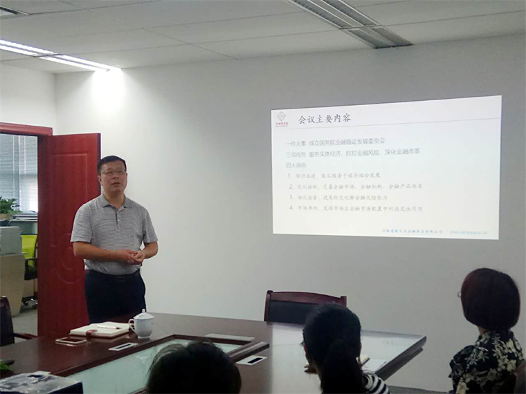 2017年7月20日,江西省聯(lián)交運(yùn)金融服務(wù)有限公司(以下簡稱江西聯(lián)交運(yùn))總經(jīng)理劉祖國主持召開專題會(huì)議,認(rèn)真學(xué)習(xí)并傳達(dá)全國金融工作會(huì)議精神,并結(jié)合江西聯(lián)交運(yùn)實(shí)際研究貫徹落實(shí)意見。