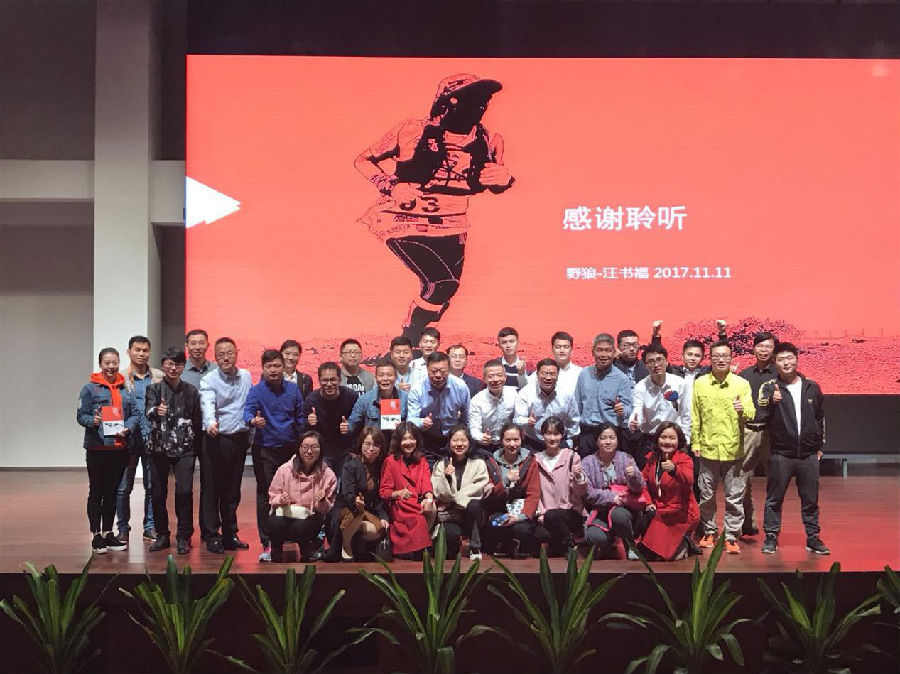 汪書福董事長結(jié)合心理學(xué)基本理論和管理學(xué)基礎(chǔ)知識(shí),以獨(dú)特的視角、風(fēng)趣幽默的演說和豐富的人生閱歷,從如何快速學(xué)習(xí)、深度學(xué)習(xí)、尋找規(guī)律、凝聚共識(shí)、識(shí)人善任、及時(shí)激勵(lì)等6個(gè)方面闡述了快速學(xué)習(xí)的方法和建設(shè)高效團(tuán)隊(duì)的內(nèi)涵。其中重點(diǎn)分享了他在1年不到的時(shí)間內(nèi)攻克120公里戈壁挑戰(zhàn)賽,并帶領(lǐng)團(tuán)隊(duì)獲得了歷史最好成績的傳奇經(jīng)歷,現(xiàn)場一次次爆發(fā)出熱烈的掌聲。汪書福董事長超強(qiáng)的意志力和個(gè)人魅力深深打動(dòng)了在場所有聽眾,其著作《誰能天生就會(huì)跑》備受推崇,講座結(jié)束后立即被一搶而空,并自覺排隊(duì)向董事長索要簽名。