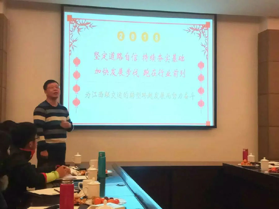 接下來劉祖國總經(jīng)理以“堅(jiān)定道路自信 持續(xù)夯實(shí)基礎(chǔ) 加快發(fā)展步伐 跑在行業(yè)前列 為江西聯(lián)交運(yùn)的轉(zhuǎn)型跨越發(fā)展而努力奮斗”為主題做總結(jié)講話。對(duì)公司2017年各項(xiàng)工作進(jìn)行了回顧和總結(jié),并對(duì)2018年工作思路、措施、目標(biāo)等進(jìn)行了全面的闡述。