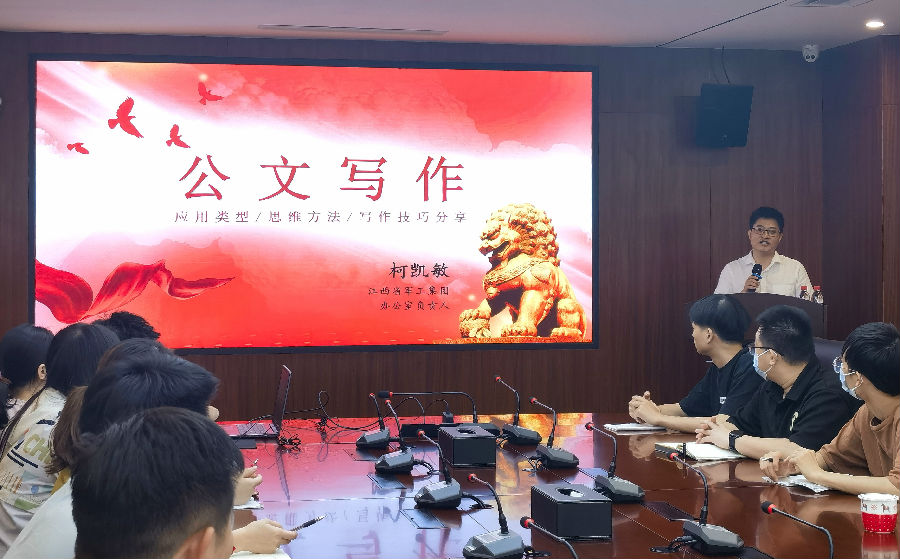 為進一步提高公司全體員工對公文寫作的認識,促進公司辦文水平提升,6月13日,業(yè)務(wù)管理部作為月度輪值部門舉辦了6月學(xué)習(xí)培訓(xùn)會——公文寫作。本次學(xué)習(xí)培訓(xùn)會特別邀請到江西省軍工控股集團辦公室負責(zé)人柯凱敏現(xiàn)場授課,公司總經(jīng)理劉祖國出席并講話。