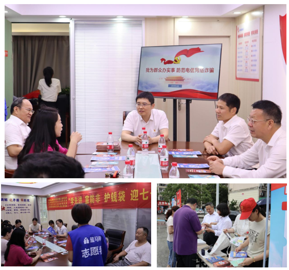 參觀結(jié)束后,全體黨員一同前往豐和花園社區(qū)開展防范非法集資宣傳主題活動?;顒蝇F(xiàn)場,大家擺設(shè)防非宣傳展板、設(shè)立咨詢臺、發(fā)放宣傳手冊、開展藍馬甲防非公益宣講活動,向社區(qū)居民講解了非法集資的特征、常見手段和防范方法,幫助提高社區(qū)居民尤其是廣大老年人群體對非法集資危害性的認識和識別能力。徐鶴飛同志并率隊來到社區(qū)黨支部,向支部負責(zé)同志了解社區(qū)基本情況,關(guān)心實際問題,并號召轄區(qū)內(nèi)相關(guān)單位積極加入到社區(qū)服務(wù)工作中。