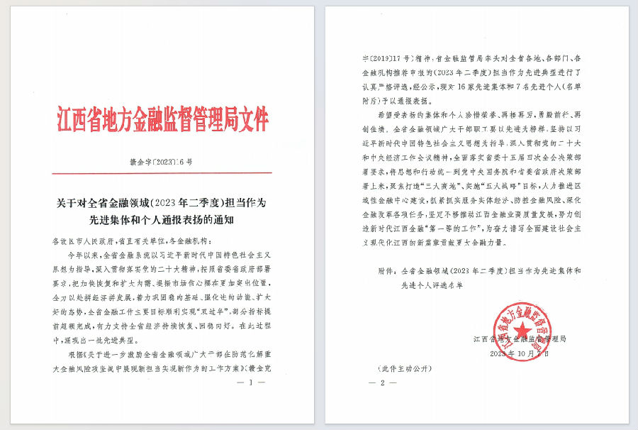 這一年,我們深化黨建,支部工作再獲肯定。我們扎實推進學(xué)習(xí)貫徹習(xí)近平新時代中國特色社會主義思想主題教育,大興調(diào)查研究之風(fēng),同各級機關(guān)和機構(gòu)聯(lián)合開展了多種形式的主題黨建活動。黨支部多項工作頻獲肯定,不僅榮獲中共江西省地方金融監(jiān)督管理局行業(yè)綜合委員會先進基層黨組織榮譽稱號,支部書記更是被選舉為黨委委員并評選為優(yōu)秀黨務(wù)工作者,良好展現(xiàn)出黨支部的戰(zhàn)斗堡壘作用和黨員的先鋒模范作用。
