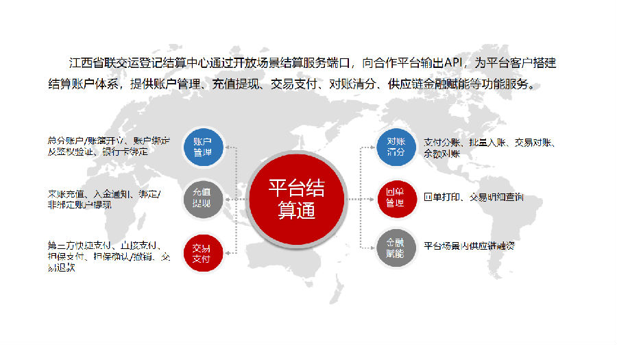 “平臺結(jié)算通”是公司作為第三方資金存管結(jié)算平臺,通過與多家結(jié)算銀行/支付機構(gòu)系統(tǒng)直連,為各類交易平臺搭建統(tǒng)一的賬戶管理體系,向平臺及平臺用戶提供總分賬戶管理、充值提現(xiàn)、交易支付、對賬清分、供應(yīng)鏈金融賦能等一體化資金管理服務(wù),為不同的垂直行業(yè)/業(yè)務(wù)場景提供全鏈路資金“收+管+付”服務(wù)解決方案。目前,平臺結(jié)算通產(chǎn)品在接入南方林業(yè)產(chǎn)權(quán)交易所、江西旅游文化交易中心等省內(nèi)部分交易場所基礎(chǔ)上,并陸續(xù)成功對接了多家醫(yī)藥流通、網(wǎng)絡(luò)貨運等產(chǎn)業(yè)平臺,已成為公司服務(wù)我省交易場所轉(zhuǎn)型發(fā)展及助力相關(guān)產(chǎn)業(yè)平臺數(shù)字化升級發(fā)展的核心業(yè)拳頭產(chǎn)品。