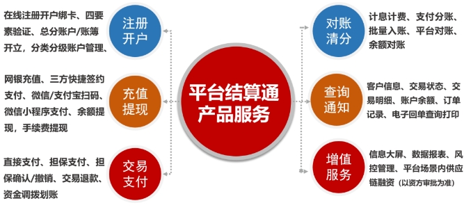平臺結(jié)算通是公司沉心運營8年多來,不斷優(yōu)化升級集中登記結(jié)算管理服務(wù)的各項功能體驗和各類場景服務(wù)輸出,重點建設(shè)打造的為地方交易場所及多類型垂直行業(yè)/業(yè)務(wù)場景提供全鏈路交易資金“收+管+付”的綜合服務(wù)解決方案。平臺結(jié)算通可滿足地方交易場所及各類B2B、B2C交易平臺的資金存管、實時結(jié)算、賬戶管理等共性需求,包括但不限于提供總分賬簿開立、多渠道充值提現(xiàn)、擔(dān)保交易支付、批量對賬清分、回單打印查詢、供應(yīng)鏈金融賦能等一體化資金結(jié)算和賬戶管理服務(wù)。