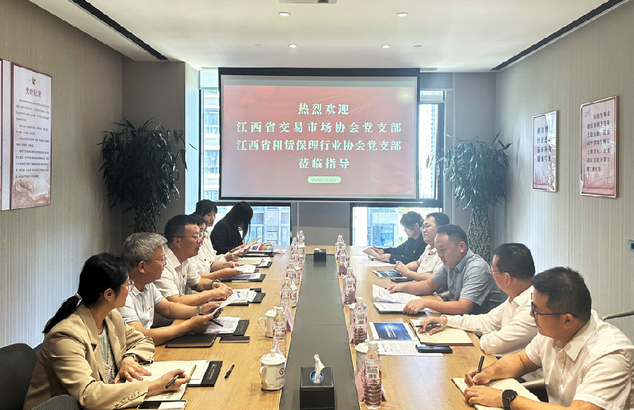 4月3日,江西省融資擔(dān)保業(yè)協(xié)會秘書長鄧云平一行到訪公司,公司董事、總經(jīng)理、江西省交易市場協(xié)會黨支部書記、執(zhí)行會長劉祖國和技術(shù)服務(wù)部相關(guān)人員現(xiàn)場接待并座談交流。