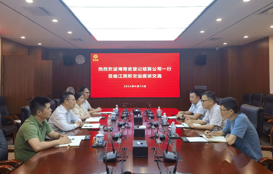 6月12日,海南省登記結(jié)算有限責(zé)任公司(以下簡稱“海南結(jié)算”)董事長文于佳一行蒞臨江西聯(lián)交運座談交流,公司董事、總經(jīng)理劉祖國,副總經(jīng)理羅莉及相關(guān)部門負責(zé)同志現(xiàn)場接待并座談交流。