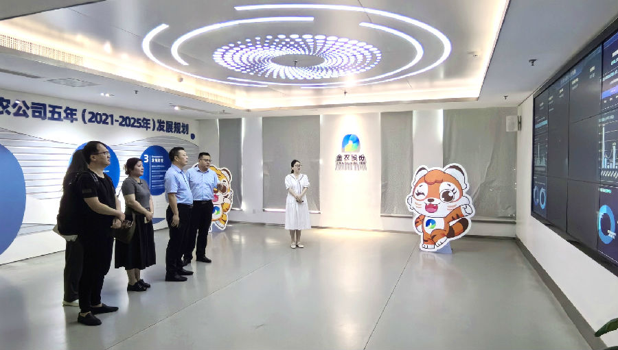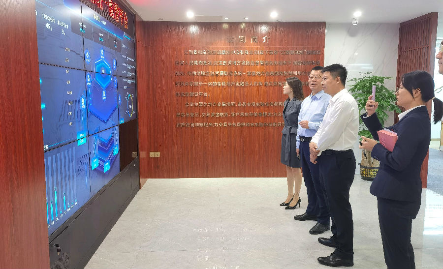 郭朝暉一行首先觀摩了“贛金衛(wèi)士”監(jiān)管信息展示大屏,詳細了解公司相關(guān)輔助監(jiān)管平臺建設(shè)成果,并對公司在輔助監(jiān)管等方面的探索實踐工作及良好成效表示高度肯定。