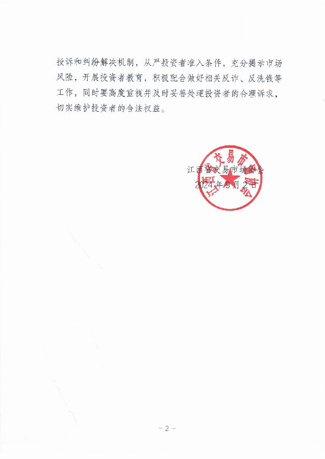 作為江西省唯一的省級登記結(jié)算中心,公司主要業(yè)務(wù)之一就是在江西省委金融辦的批復(fù)授權(quán)和指導(dǎo)下,依照《江西省交易場所管理辦法(試行)》相關(guān)規(guī)定,為全省各類交易場所提供獨立第三方的交易標(biāo)的統(tǒng)一登記、保證金統(tǒng)一存管、交易統(tǒng)一結(jié)算及交易數(shù)據(jù)監(jiān)測等服務(wù)。同時,公司探索實踐為地方金融多類行業(yè)輸出集中登記結(jié)算管理服務(wù),助力地方產(chǎn)業(yè)經(jīng)濟和平臺經(jīng)濟提質(zhì)增效、規(guī)范快速發(fā)展。