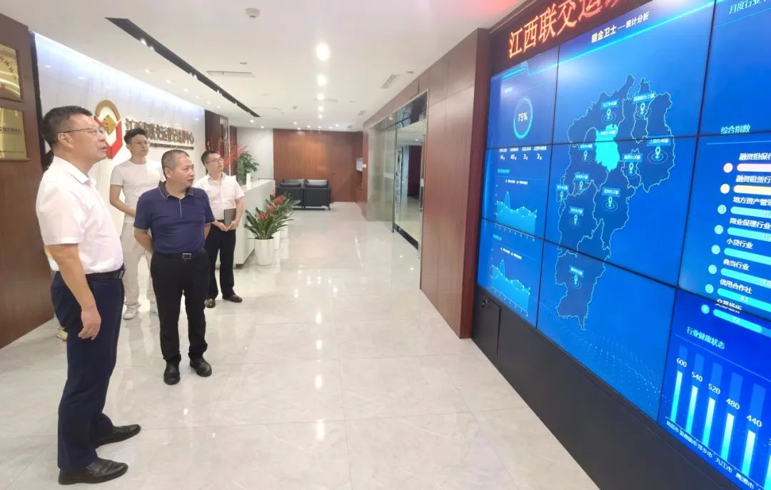 劉祖國一行首先觀摩了江蘇小貸行業(yè)綜合信息系統(tǒng)展示大屏,詳細了解江蘇省小貸行業(yè)數(shù)字化監(jiān)管、發(fā)展和運行等情況。