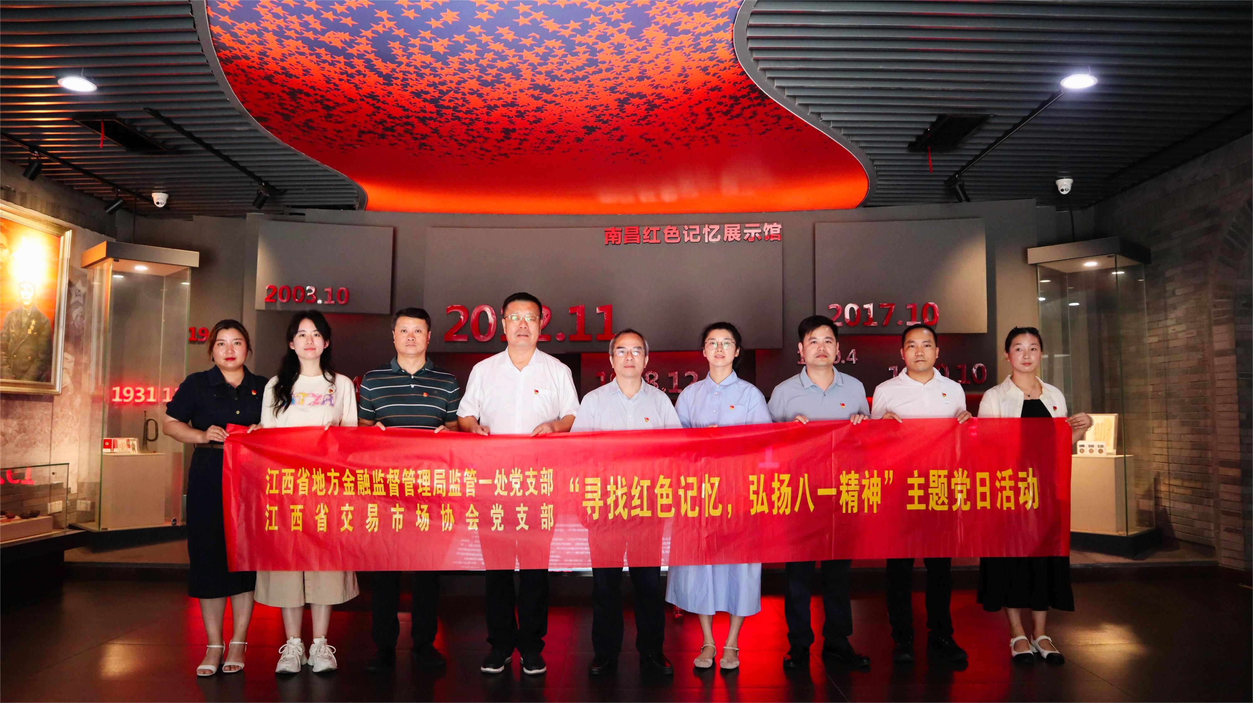為熱烈慶祝中國人民解放軍建軍96周年,繼承弘揚紅色革命基因,8月2日,江西省交易市場協(xié)會黨支部與省金融局監(jiān)管一處黨支部聯(lián)合開展“尋找紅色記憶 弘揚八一精神”主題黨日活動。省金融局監(jiān)管一處黨支部書記李四旺同志、協(xié)會執(zhí)行會長劉祖國同志參加活動。