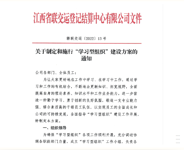 一直以來,江西聯(lián)交運秉承創(chuàng)新發(fā)展理念,高度重視員工和公司的共同成長發(fā)展,始終堅持在學(xué)中干、干中學(xué)的成長育人理念,持續(xù)培養(yǎng)和鍛煉員工各項綜合能力提高,不斷增強(qiáng)隊伍創(chuàng)新創(chuàng)業(yè)干事真本領(lǐng)。為此,公司持續(xù)推進(jìn)學(xué)習(xí)型組織建設(shè)工作,開展了多種形式、多層次的主題學(xué)習(xí)活動,在公司上下營造出良好的學(xué)習(xí)氛圍,學(xué)習(xí)型組織建設(shè)工作取得良好成效。